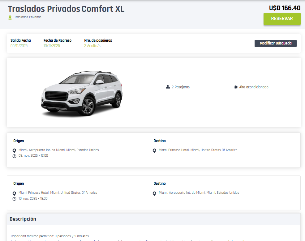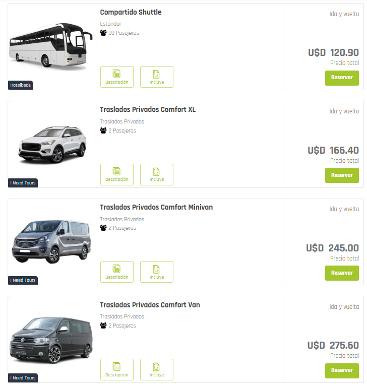 Seleccioná el traslado de tu interés haciendo clic en “Reservar”.