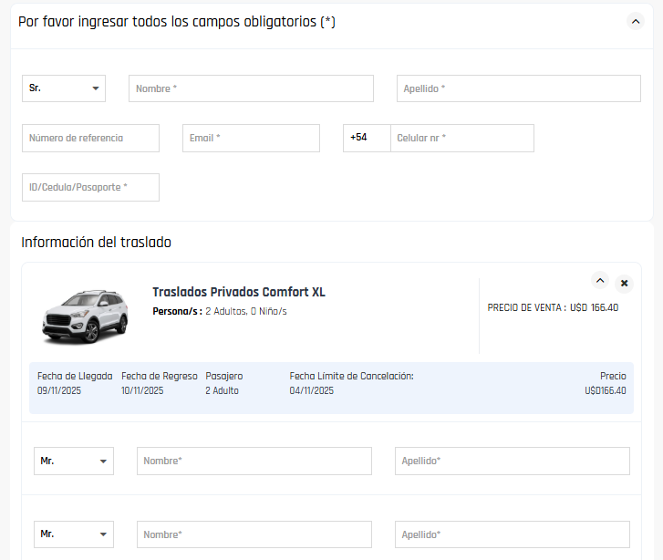 Completá los datos de los pasajeros y confirmá la reserva.